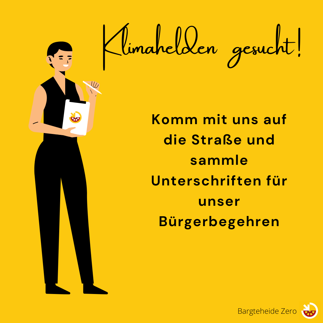 Auch am Samstag waren wir wieder unterwegs und haben dem Nieselregen getrotzt, um Unterschriften für ein klimaneutrales Bargteheide zu sammeln. Immer mit dabei unser geliehenes Bäumchen im Bollerwagen, für den …
